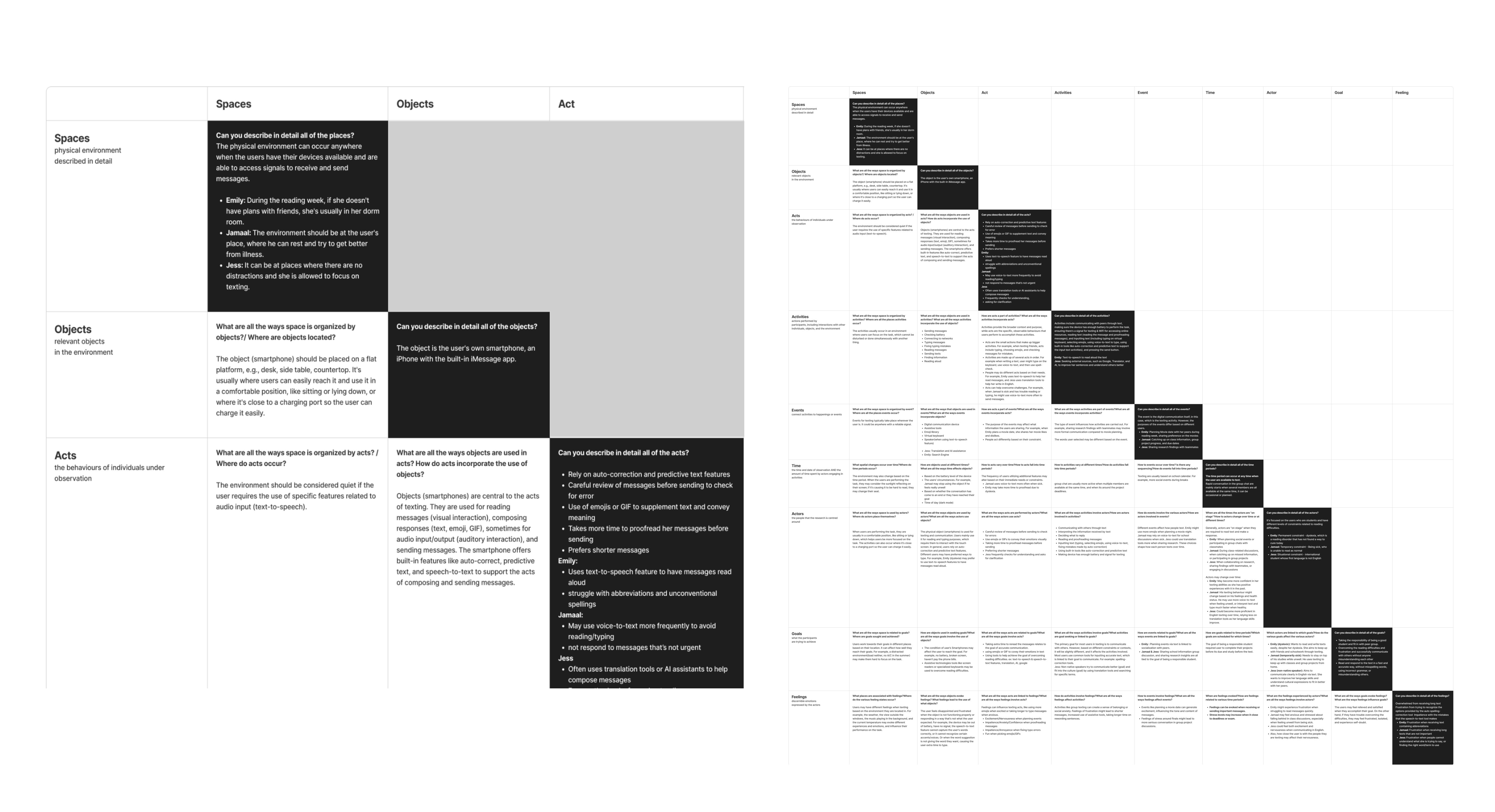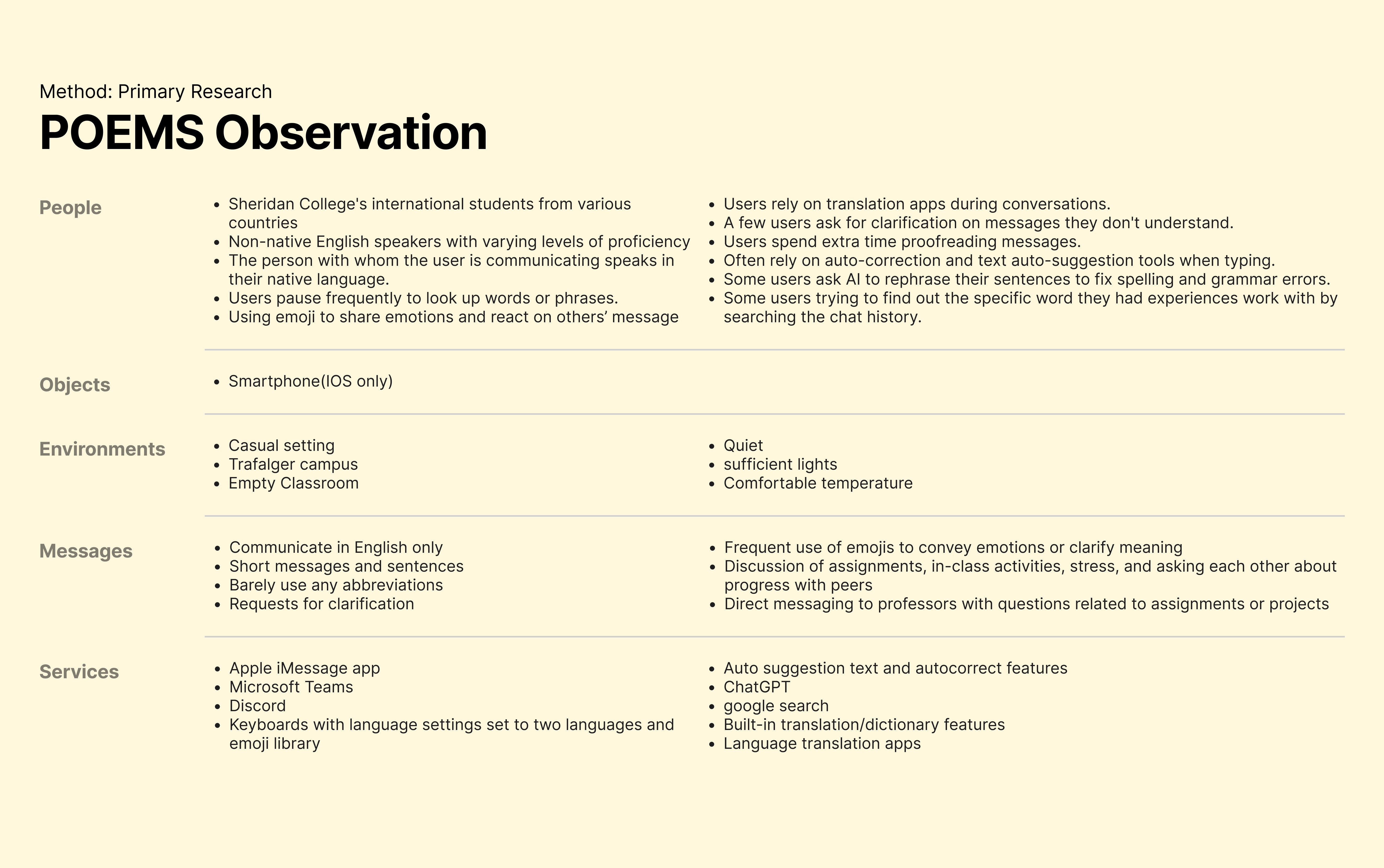 Used journey maps and Spradley’s matrix to understand real texting behaviours and breakdown point
