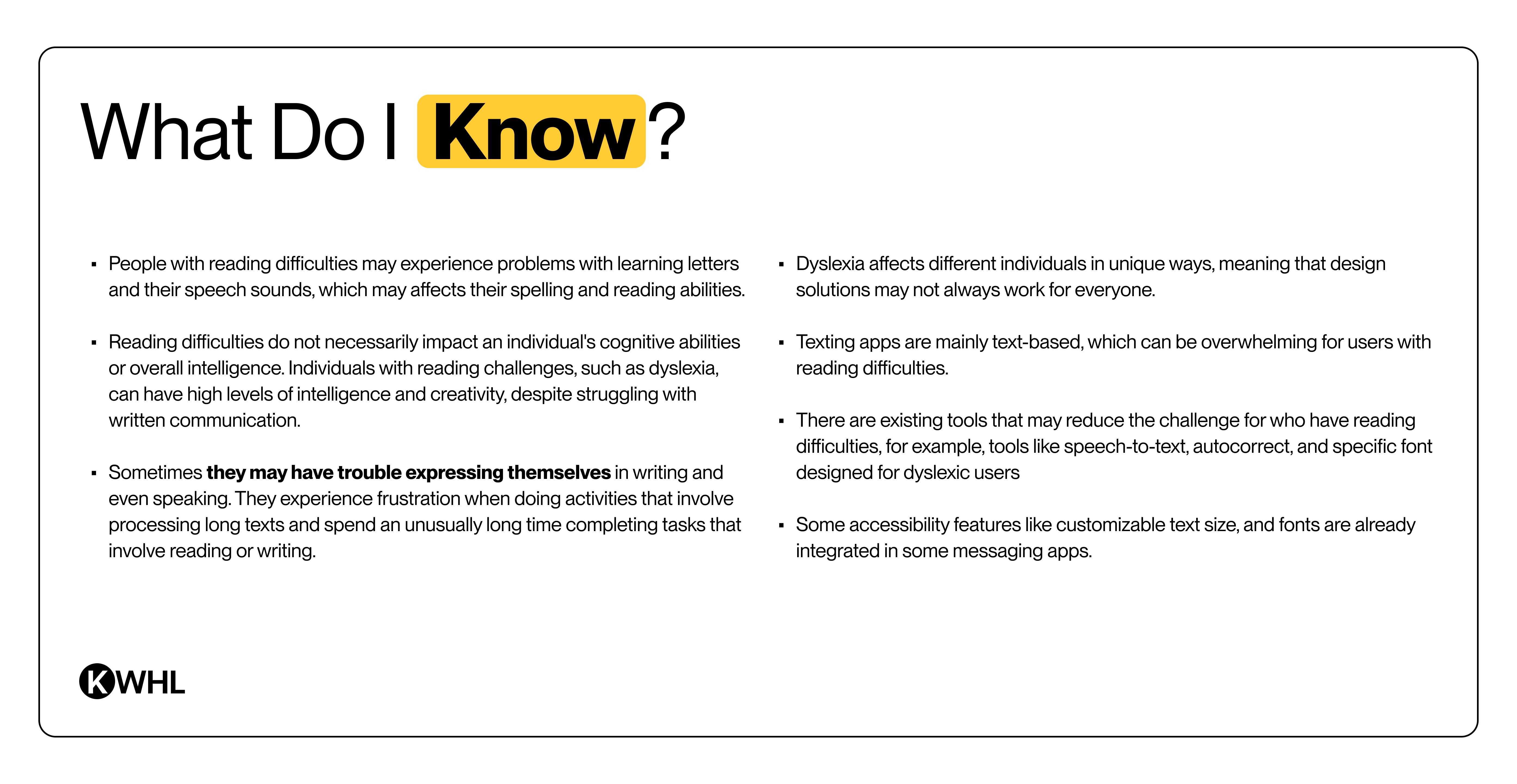 Used a KWHL table to map existing knowledge, assumptions, and research gaps
